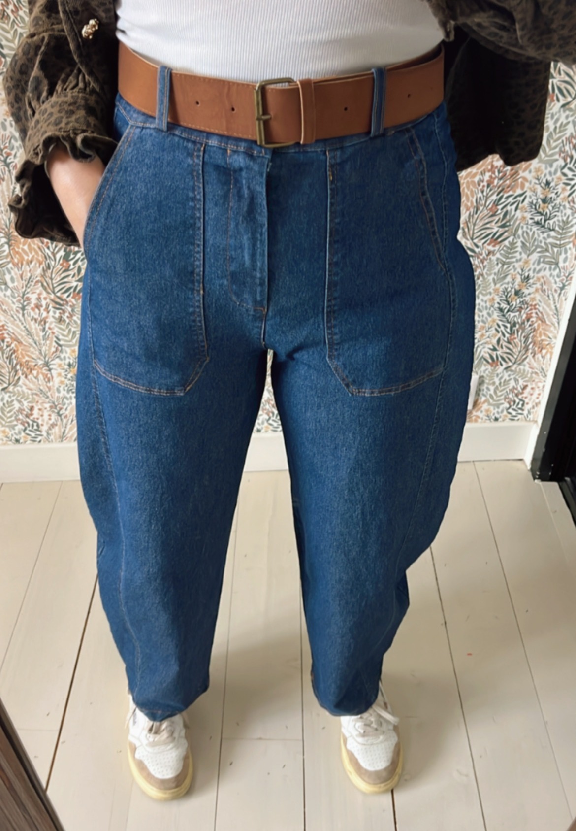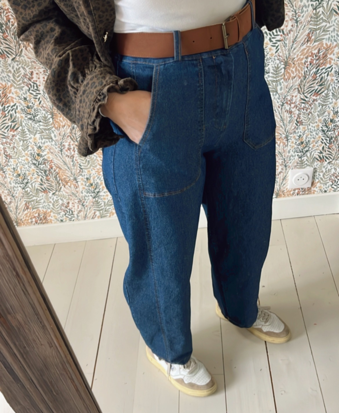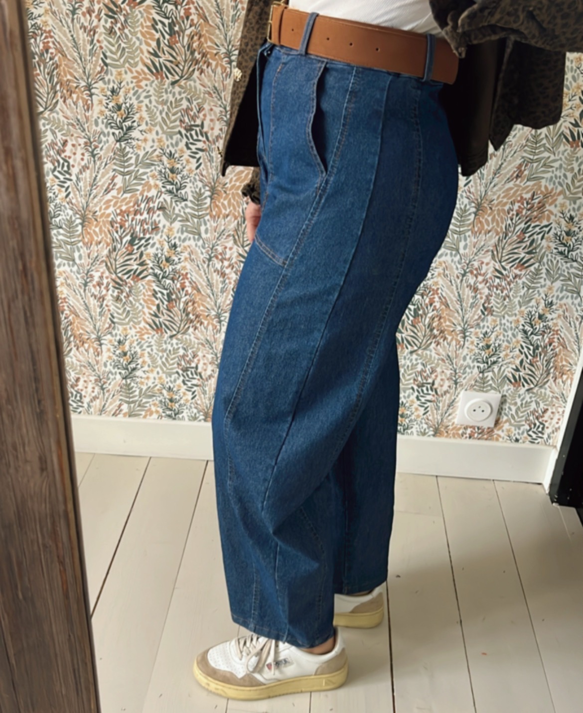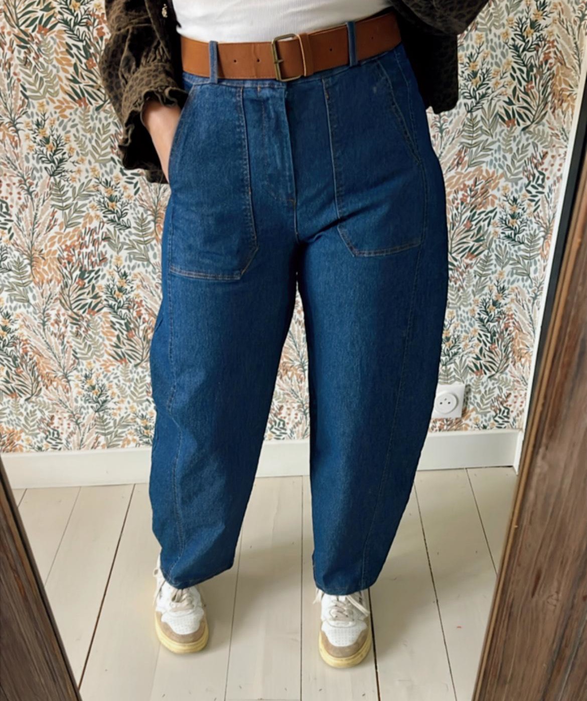 Le jean Émilien revisite la silhouette « barrel » — taille haute, jambe arrondie et allure affirmée — pour une élégance décontractée et contemporaine. Sa toile de coton épaisse structure la silhouette tout en offrant un confort souple et naturel.