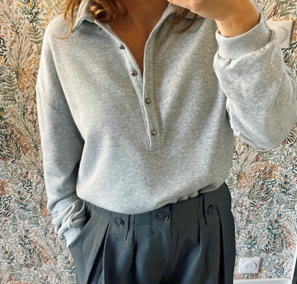 Col polo souple et patte de boutonnage à pressions métalliques