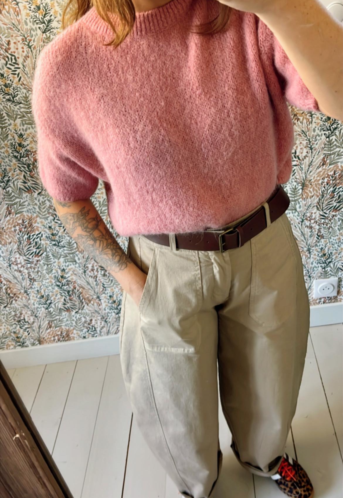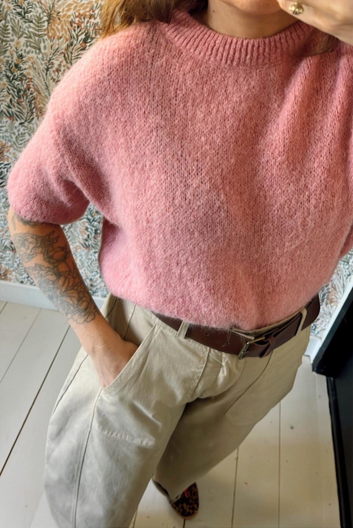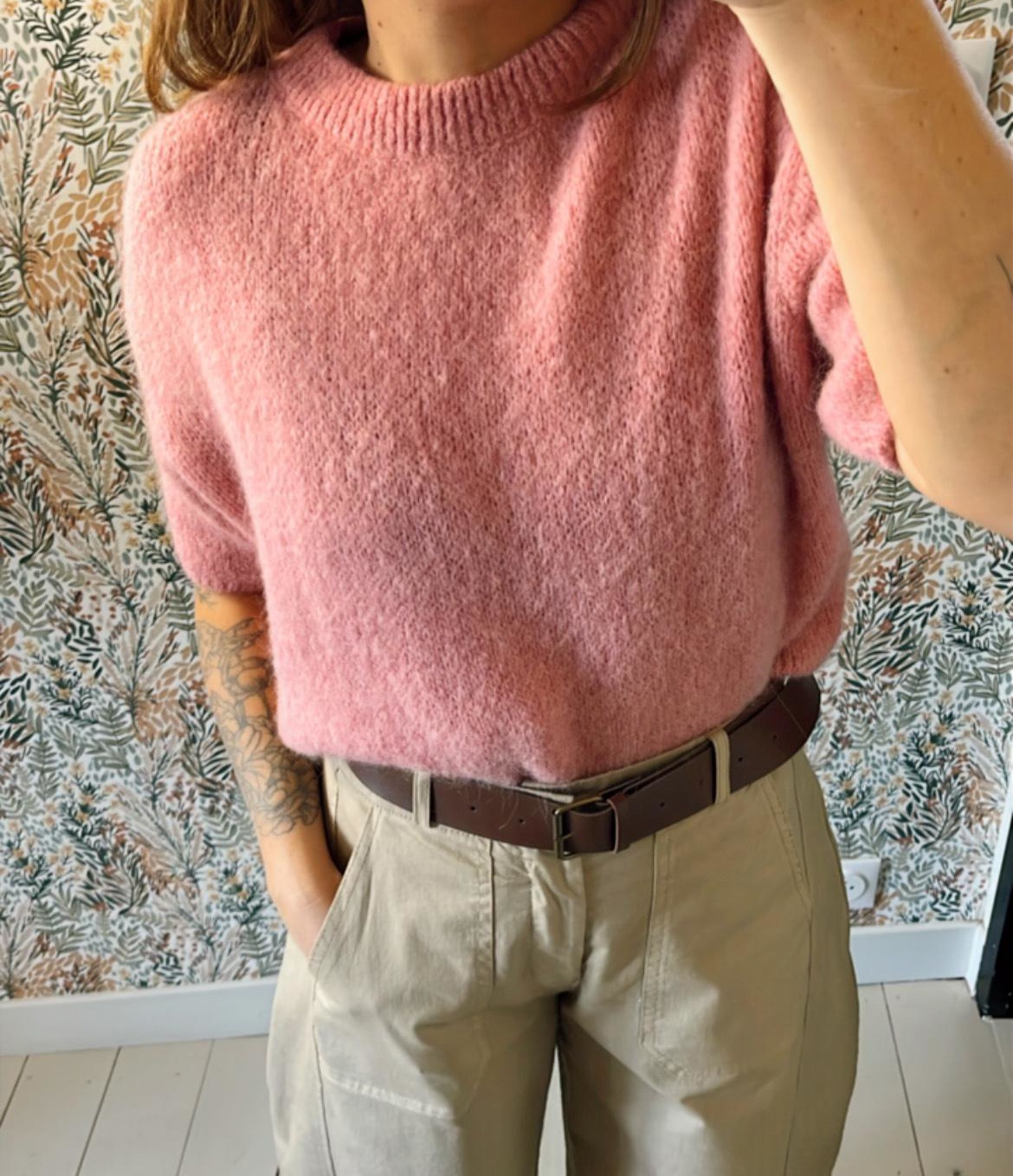 Avec sa maille moelleuse et son rose poudré, le pull Rosalie insuffle une touche de tendresse à chaque silhouette. Sa coupe légèrement carrée et ses manches courtes en font la pièce idéale entre deux saisons, à porter rentré dans un pantalon taille haute ou simplement posé sur une jupe fluide.