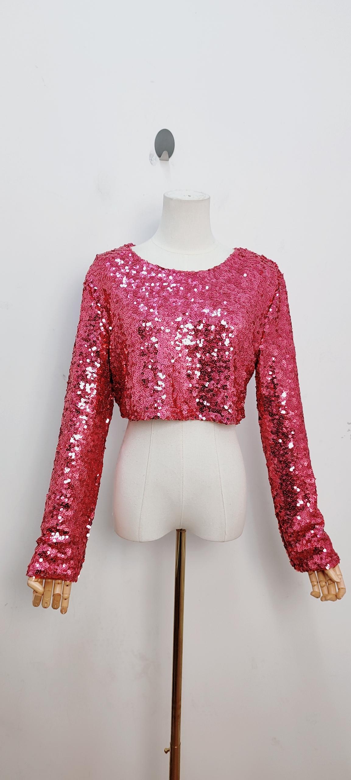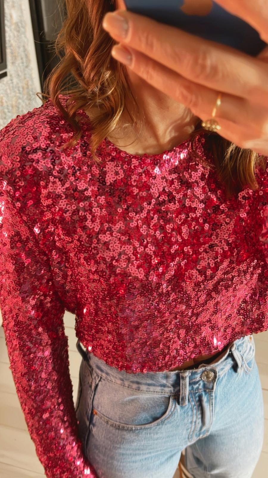 Top entièrement brodé de sequins fuchsia